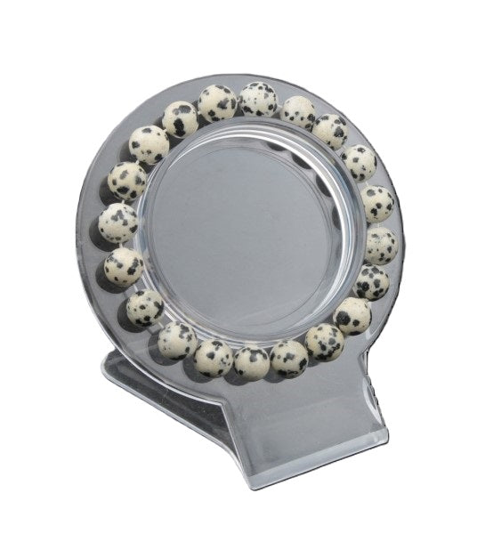 Experience the natural beauty and healing properties of Dalmatian Jasper with our 8mm crystal bead bracelet. Known for its unique spotted pattern and grounding energy, this bracelet is perfect for promoting calmness and balance in your daily life. Add this stunning piece to your jewelry collection today.