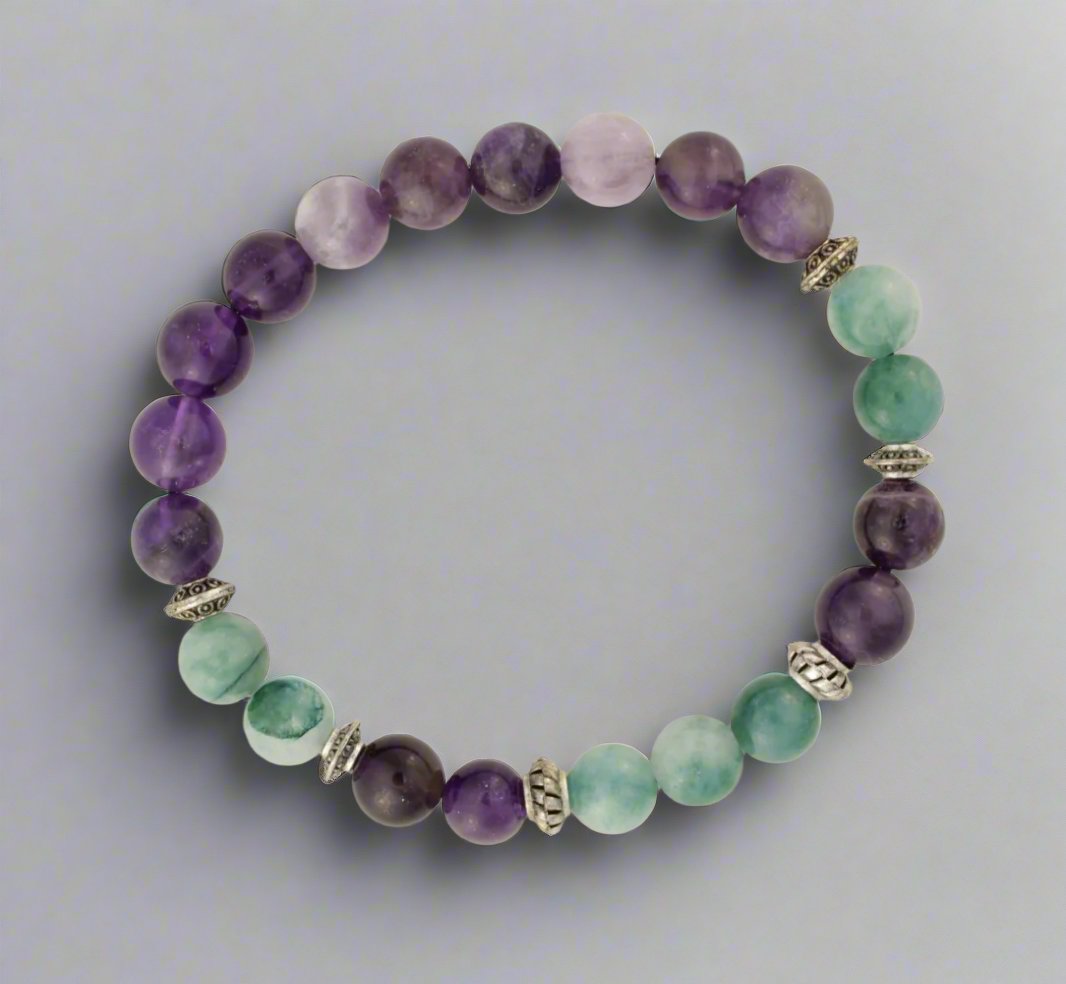 This cleansing bracelet is made with powerful Green Aventurine and Dream Amethyst stones, accented with silver spacers for a touch of elegance. These stones are known for their cleansing properties, helping to purify the mind, body, and spirit. Wear daily for overall well-being.