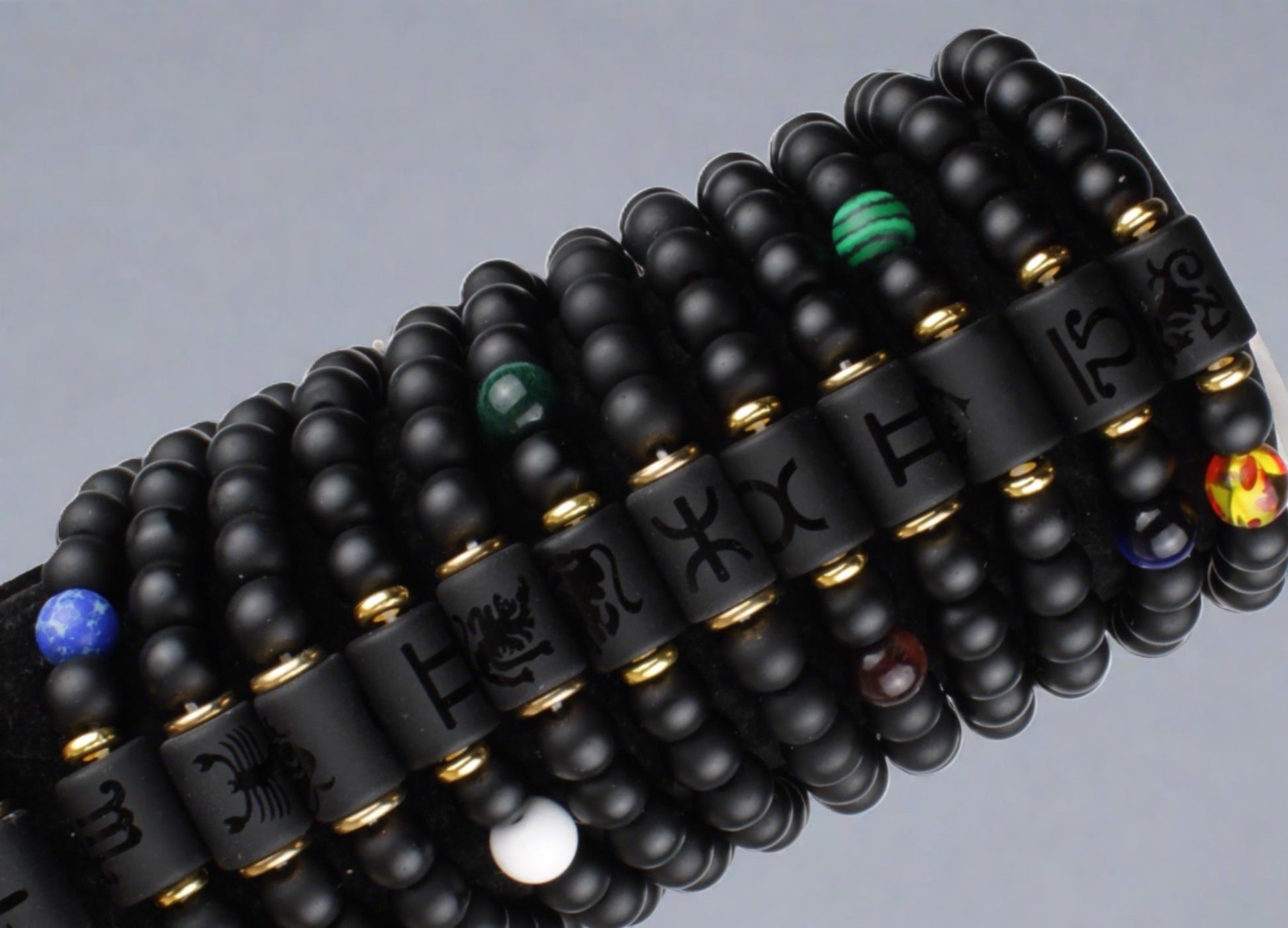 Expertly crafted with black matte obsidian crystal stone, our constellation bracelets feature an intricate zodiac sign imprint. Available for all signs, these bracelets provide a unique touch of personalization while also exuding a sleek and sophisticated look. Connect with the stars and elevate your style with our constellation bracelets.