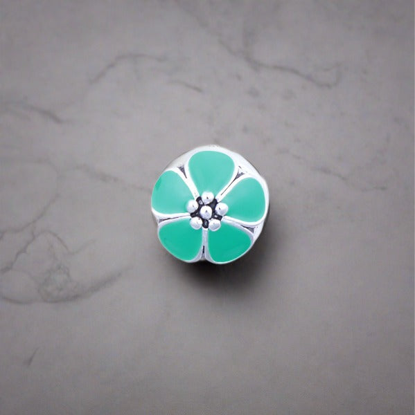 Enhance your bracelet with our high-quality, hand-crafted Flower Stopper Beads. Made from sterling silver and enameled with a beautiful Cherry Blossom in black, green, or white. Keep your beads in place and add a touch of elegance to your jewelry collection.
