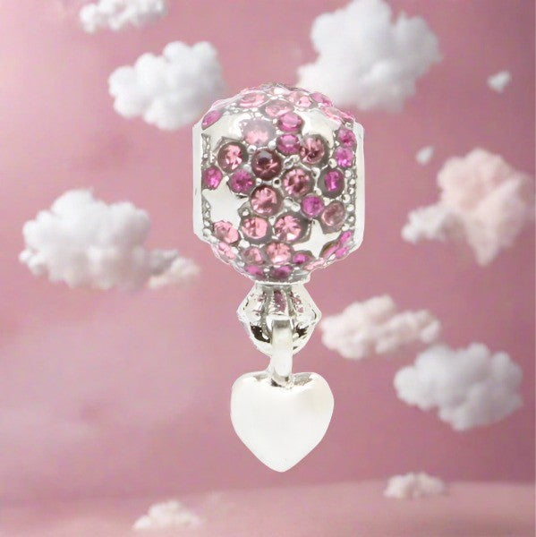 Add a touch of style to your bracelet with this sterling silver Hot Air Balloon spacer charm - featuring pink flowers with a dangling heart, perfect for jewelry lovers.