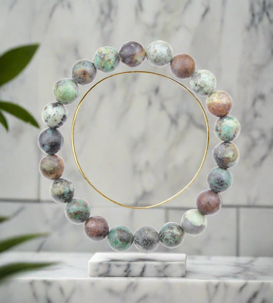 This exquisite 8mm Kambaba Jasper bracelet is crafted with smooth and lustrous crystal beads. Known for its grounding and healing properties, Kambaba Jasper brings balance and stability to one's life. Elevate your style with this versatile and beneficial accessory.