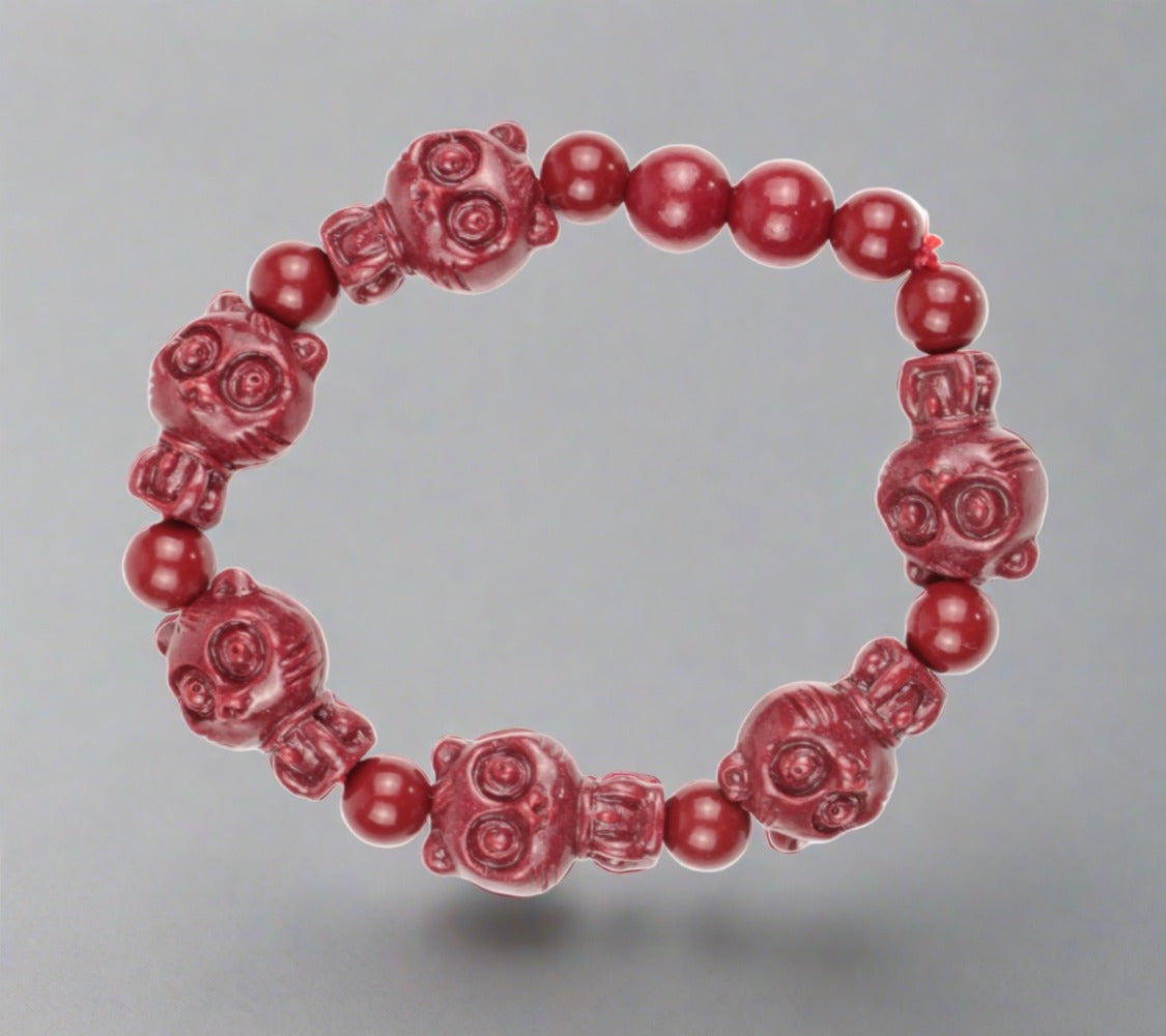Beaded with vibrant Cinnabar crystal stones and adorned with cute kitty cats, this children's bracelet is a must-have for any trendy little one. Let the calming energy of Cinnabar stone bring balance and positivity, while the playful feline designs add a touch of whimsy to any outfit. Meow-velous!