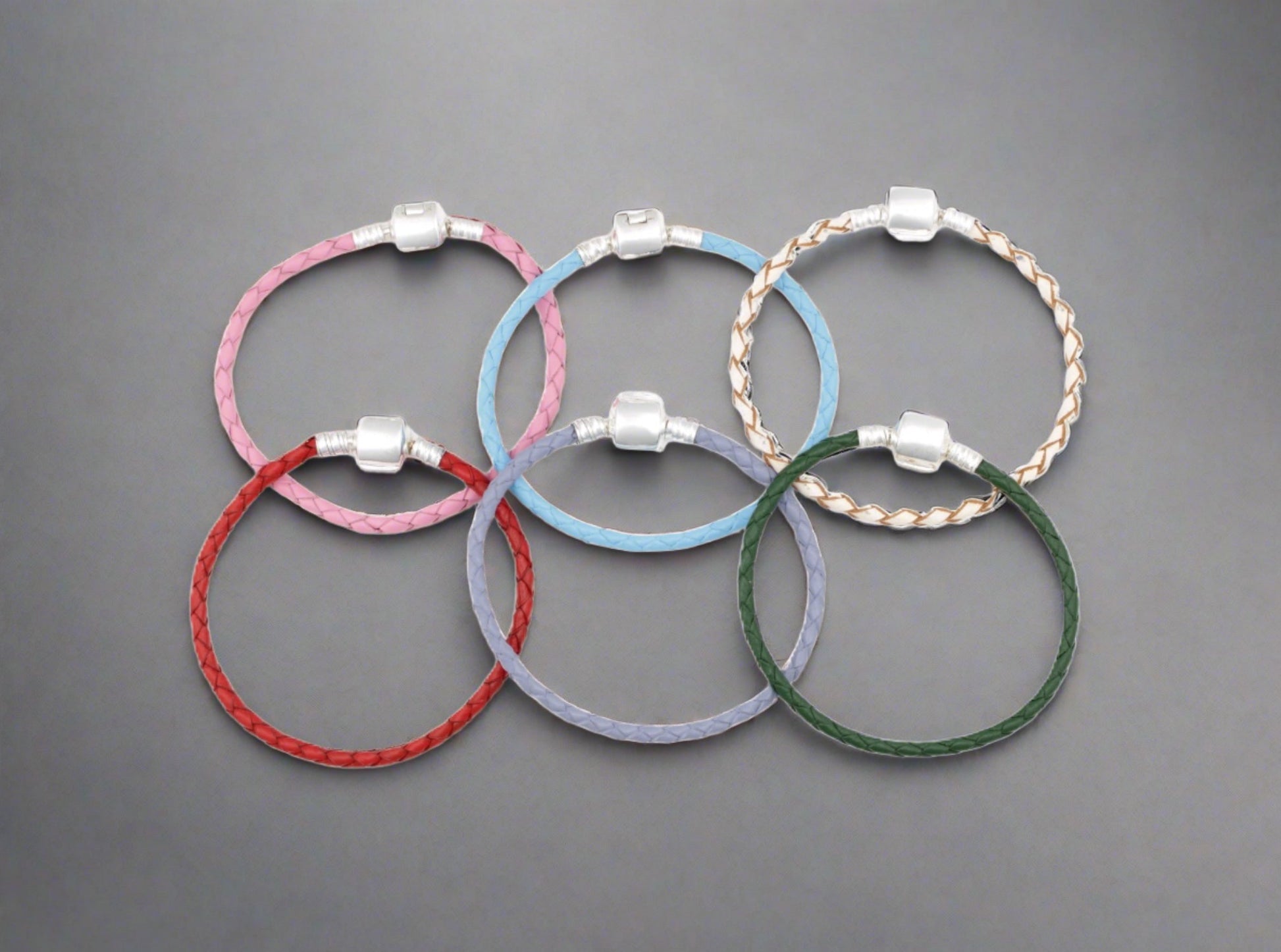 Crafted with the finest leather and a sleek silver barrel clasp, our Leather Braided Bracelets offer a unique way to showcase your personal style. Choose from a variety of colors including red, pink, sky blue, dark blue, purple, green, black, brown and ivory, and add your own charms and pendants for a personalized touch. Elevate your accessories game with this versatile and stylish bracelet.