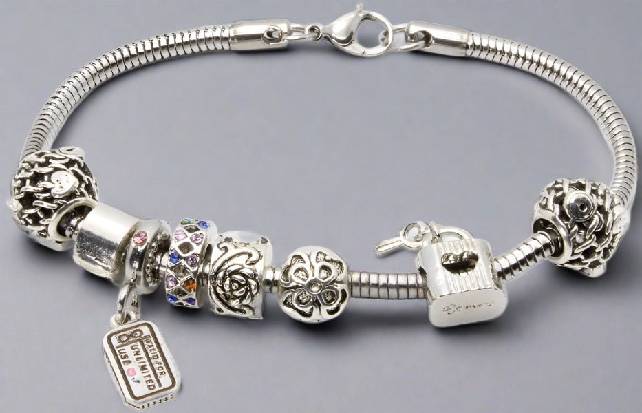 This Locked in Love Charm Bracelet is the perfect way to show your commitment. An eye-catching design featuring a romantic theme, it features a carefully crafted charm adorned with stunning gems for a timeless look. Wear it proudly to express your everlasting love.