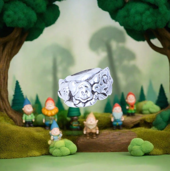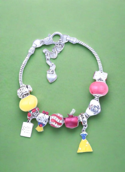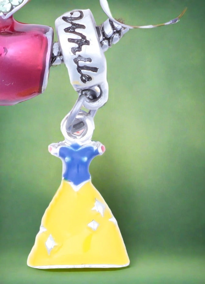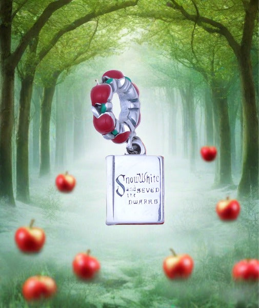 "Add whimsy to your charm bracelet with Sterling silver Snow White Charms. Featuring Snow White spacer, Heart spacer, Story Book, Snow Whites Dress and 7 Dwarfs spacer. Perfect for any Disney fan. (Usable on any charm bracelet. Not guaranteed to summon seven dwarfs.)"