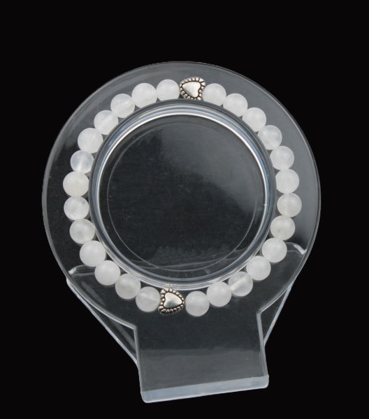 Discover a sense of calm and balance with this White Jade crystal bracelet. Featuring 6mm beads and Silver Heat spacers, this sleek and elegant accessory is known for its healing and protective properties. Add it to your collection and experience its potential benefits.