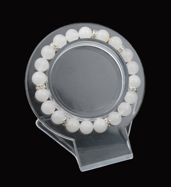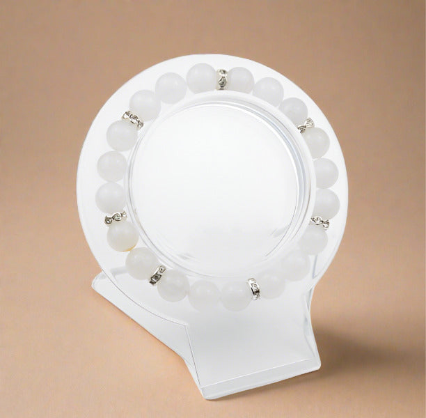 Experience the healing and calming properties of White Jade with our Crystal Bead Bracelet. The 8mm beads paired with silver spacers featuring zircon diamonds create a sophisticated piece of jewelry. Let the energy of White Jade bring balance and harmony to your life.